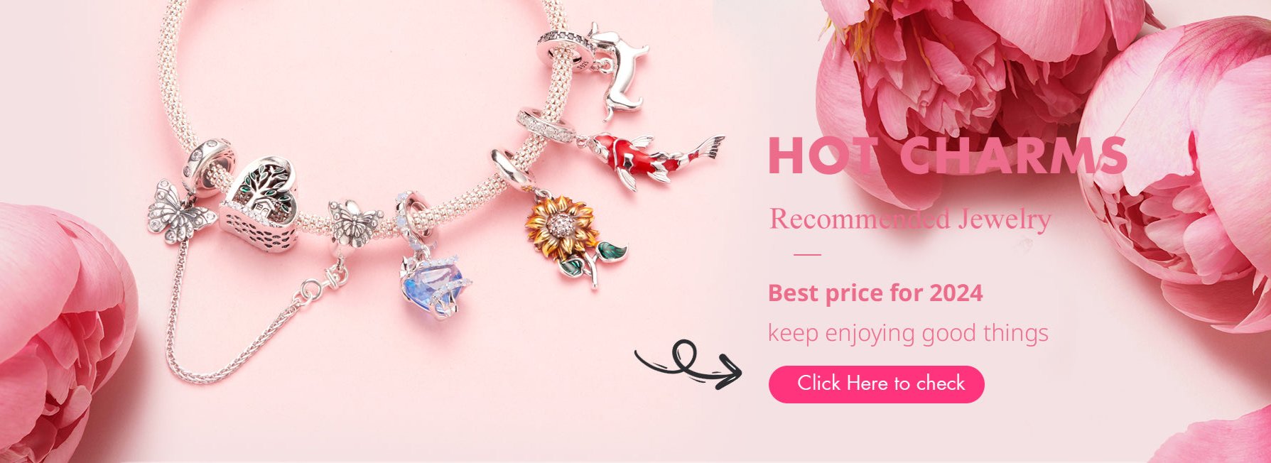 Lotus Flower Pendant Charm for Bracelet, S925 Sterling Silver