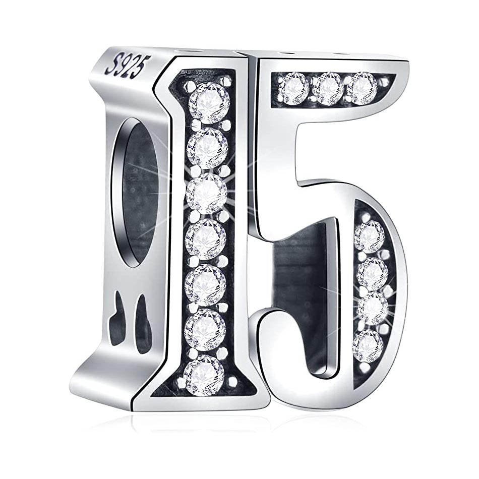 15th Birthday Charm for Bracelet, S925 Sterling Silver
