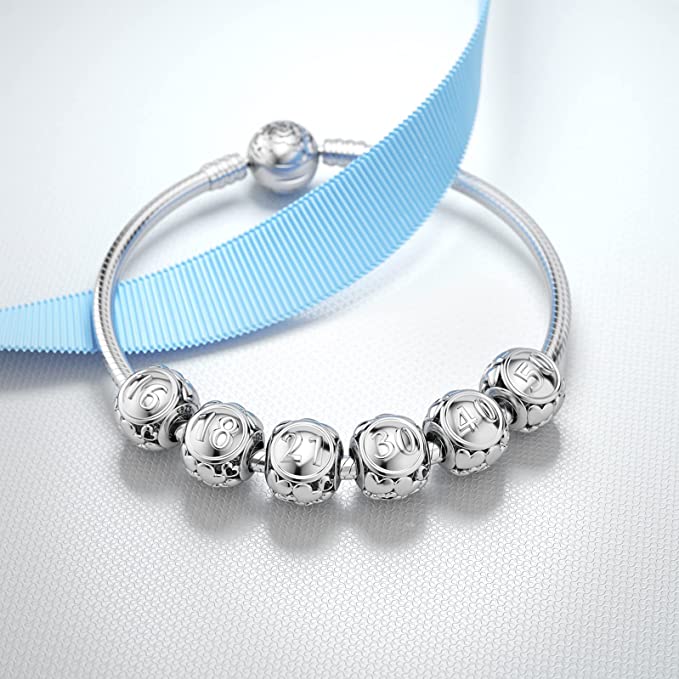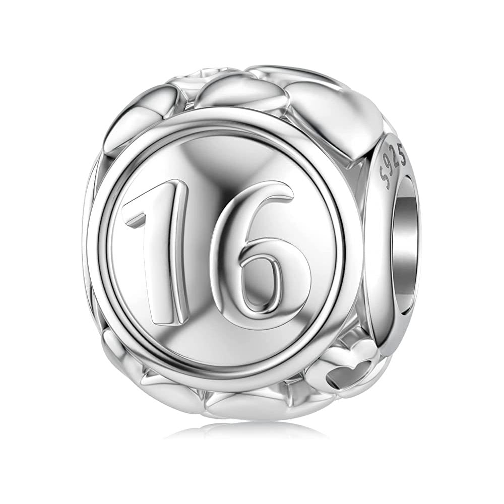 16th Birthday Bead Charm for Bracelet, S925 Sterling Silver
