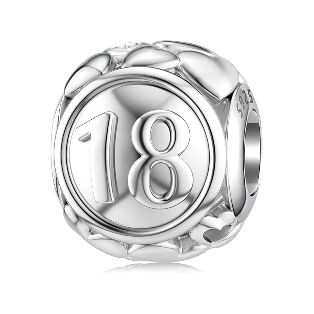18th Birthday Bead Charm for Bracelet, S925 Sterling Silver