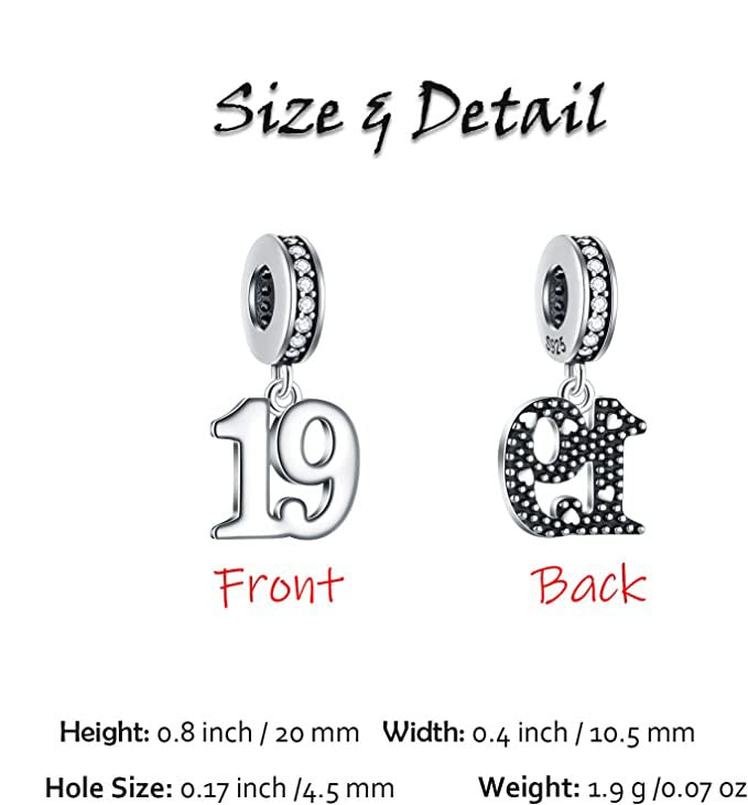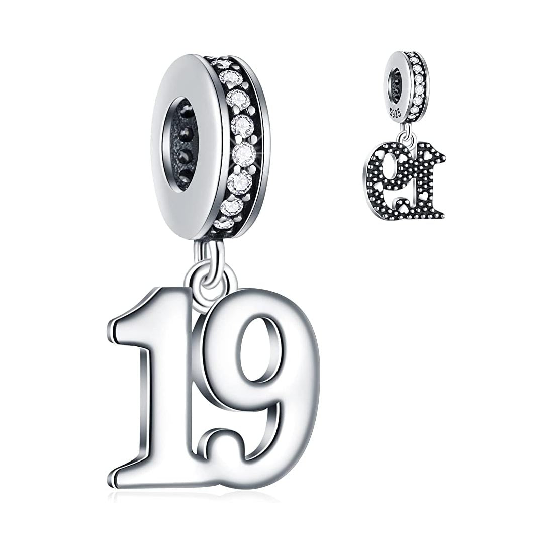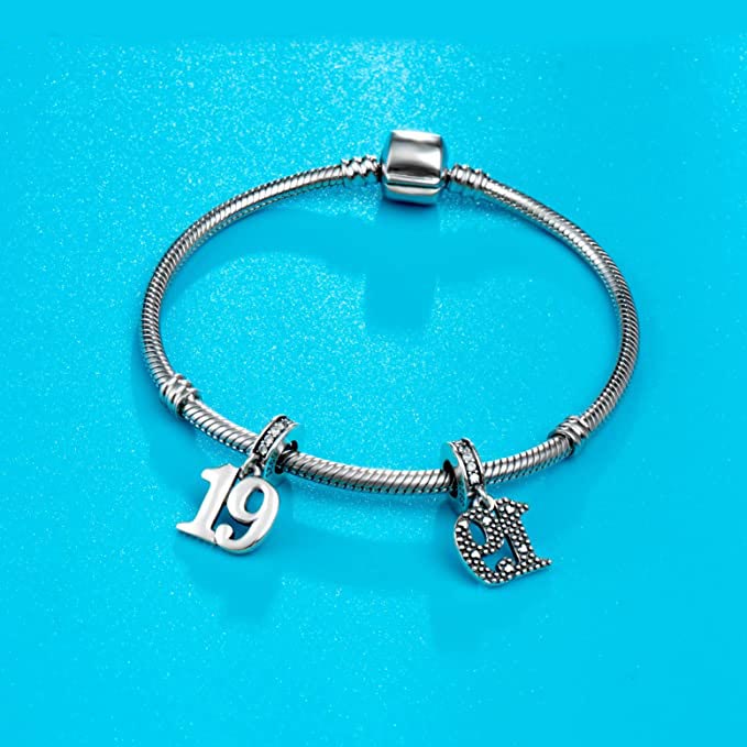 19th Birthday Dangle Charm for Bracelet, S925 Sterling Silver