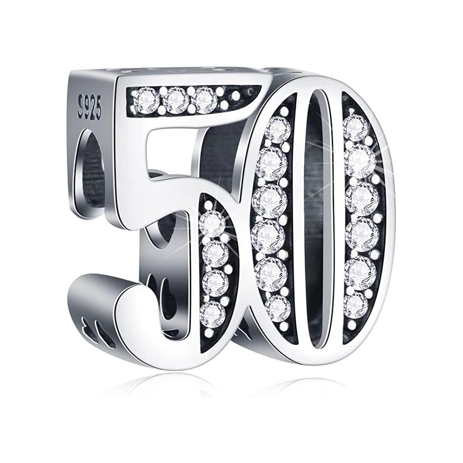 50th Birthday Charm for Bracelet, S925 Sterling Silver