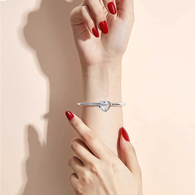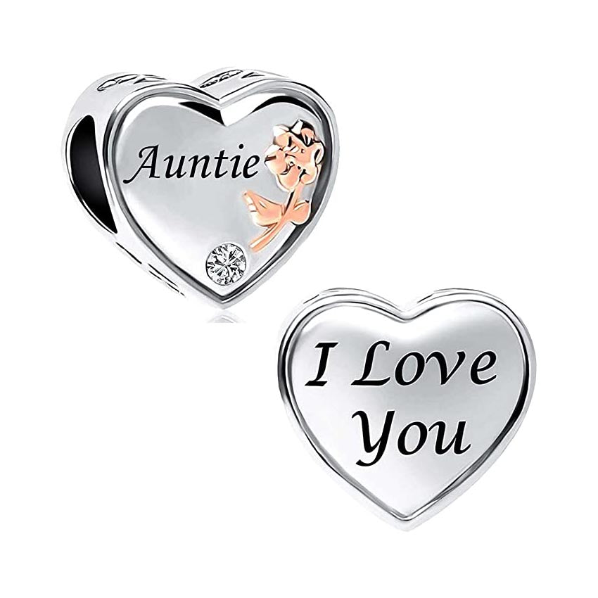 Auntie I Love You Heart Charm for Bracelet, S925 Sterling Silver