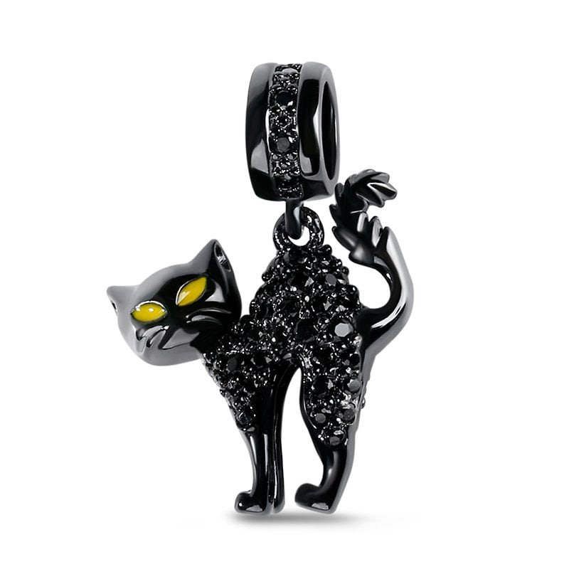 Black Cat Dangle Charm for Bracelet, S925 Sterling Silver