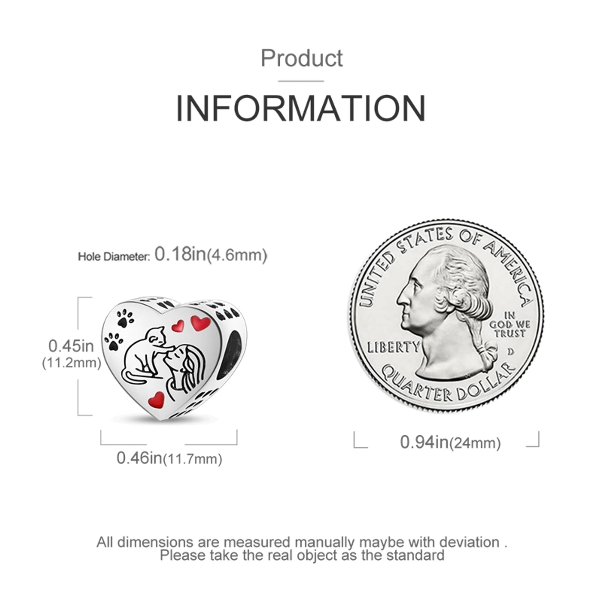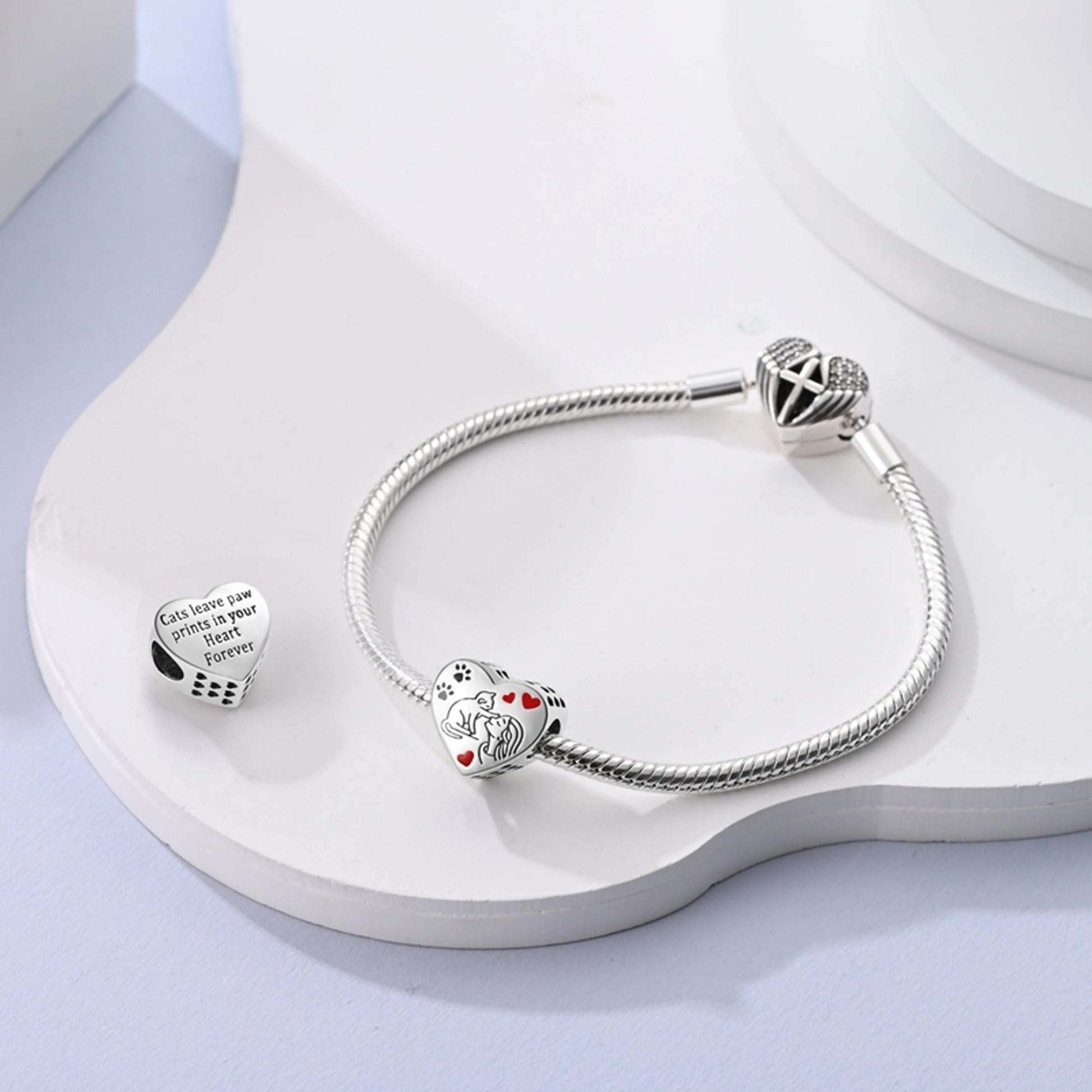 Cat Paw Print in Your Heart Charm for Bracelet, S925 Sterling Silver