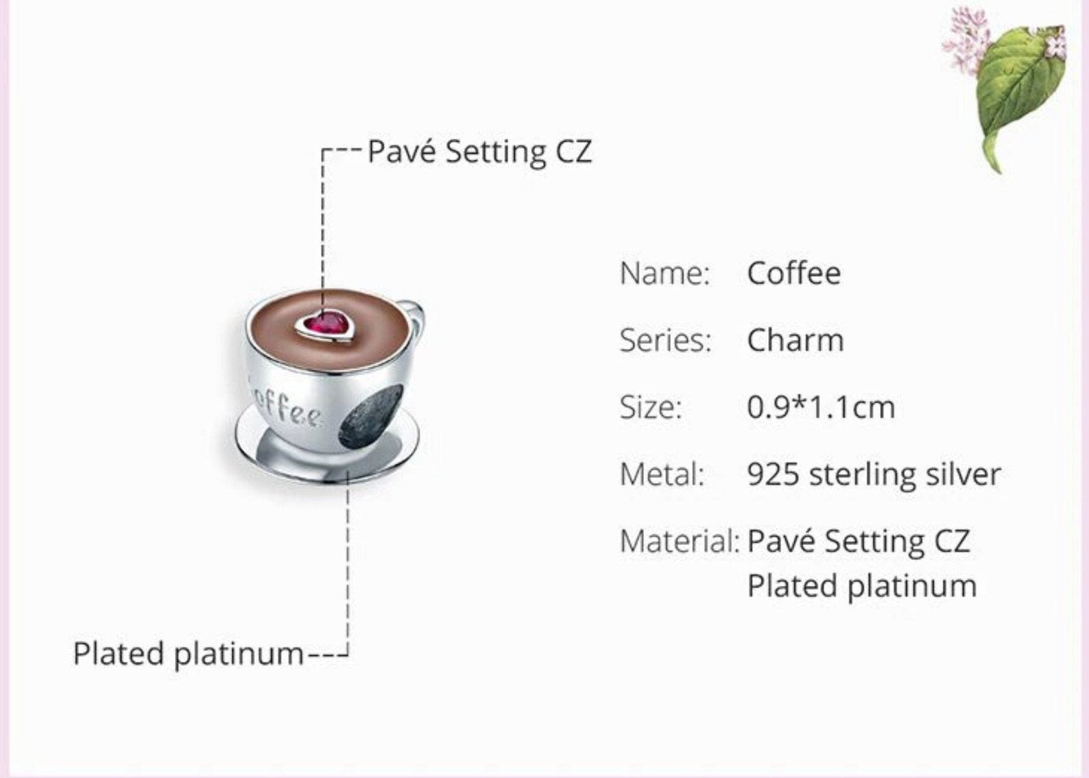 Coffee Lover Cup Charm for Bracelet, S925 Sterling Silver