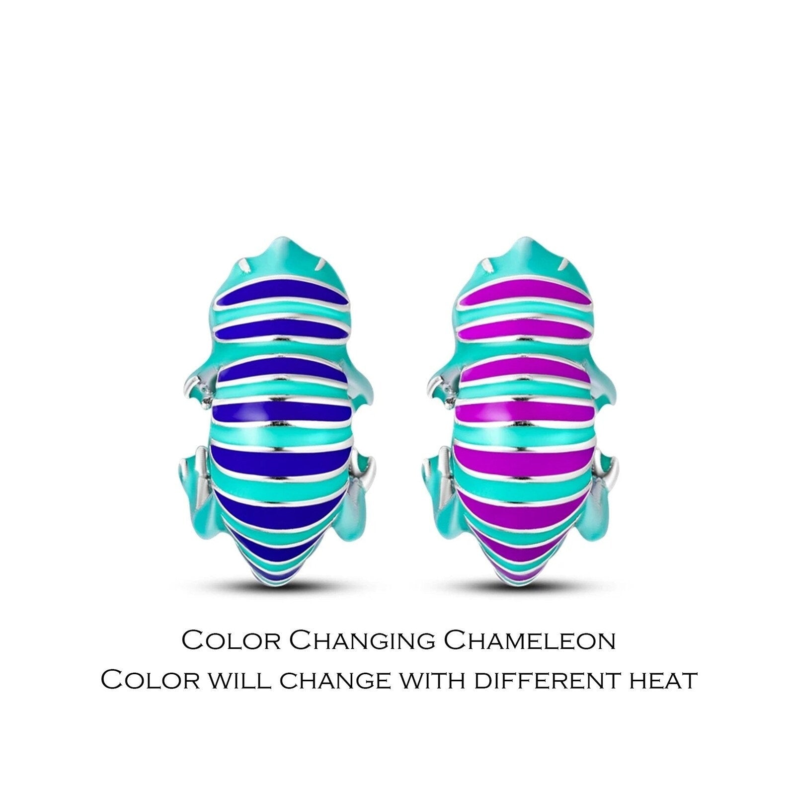 Colour Changing Chameleon Charm for Bracelet, S925 Sterling Silver