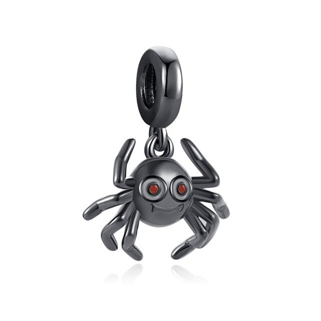 Cute Black Spider Charm for Bracelet, S925 Sterling Silver