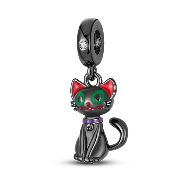 Cute Cat Pendant Charm for Bracelet, S925 Sterling Silver