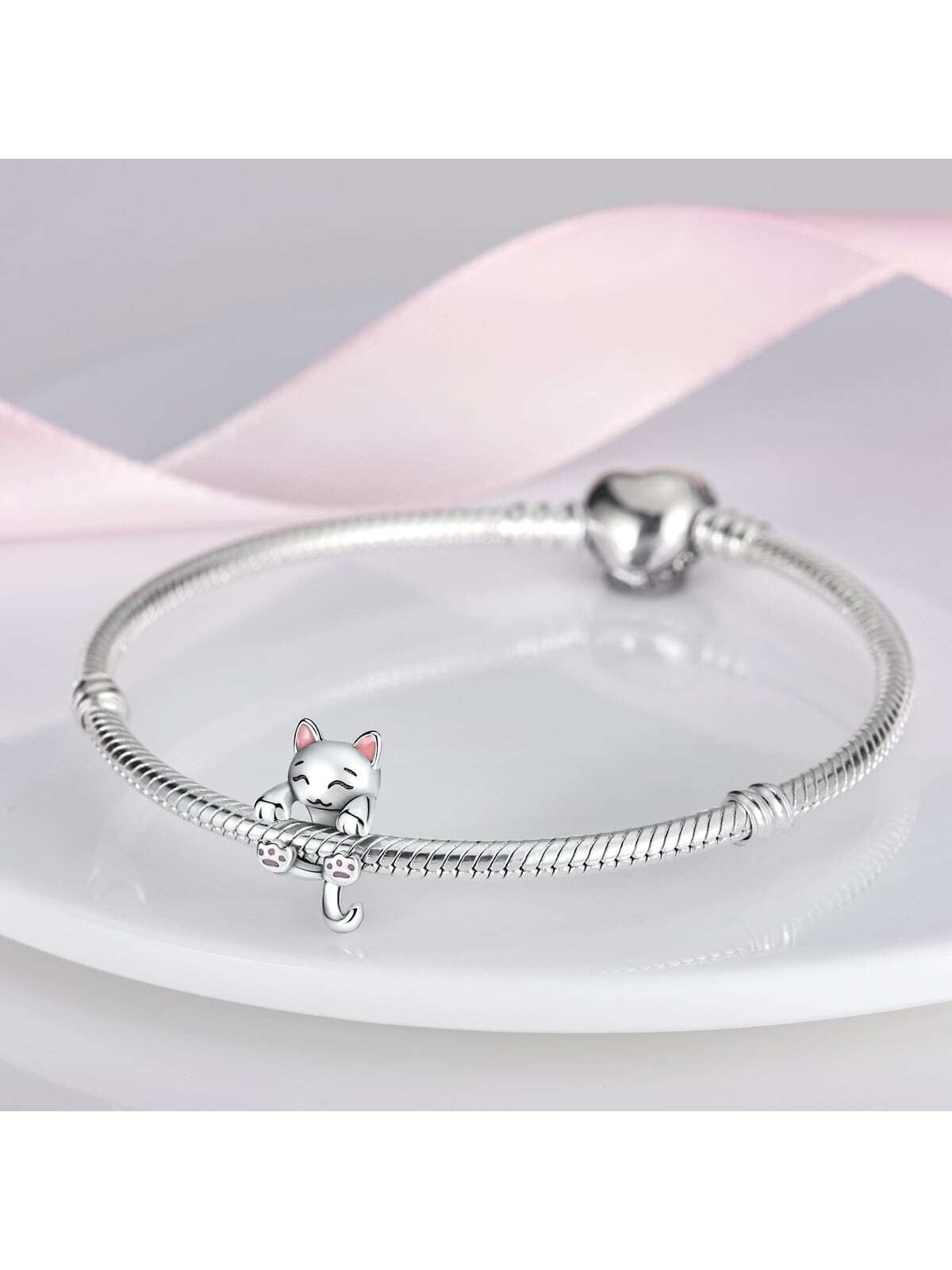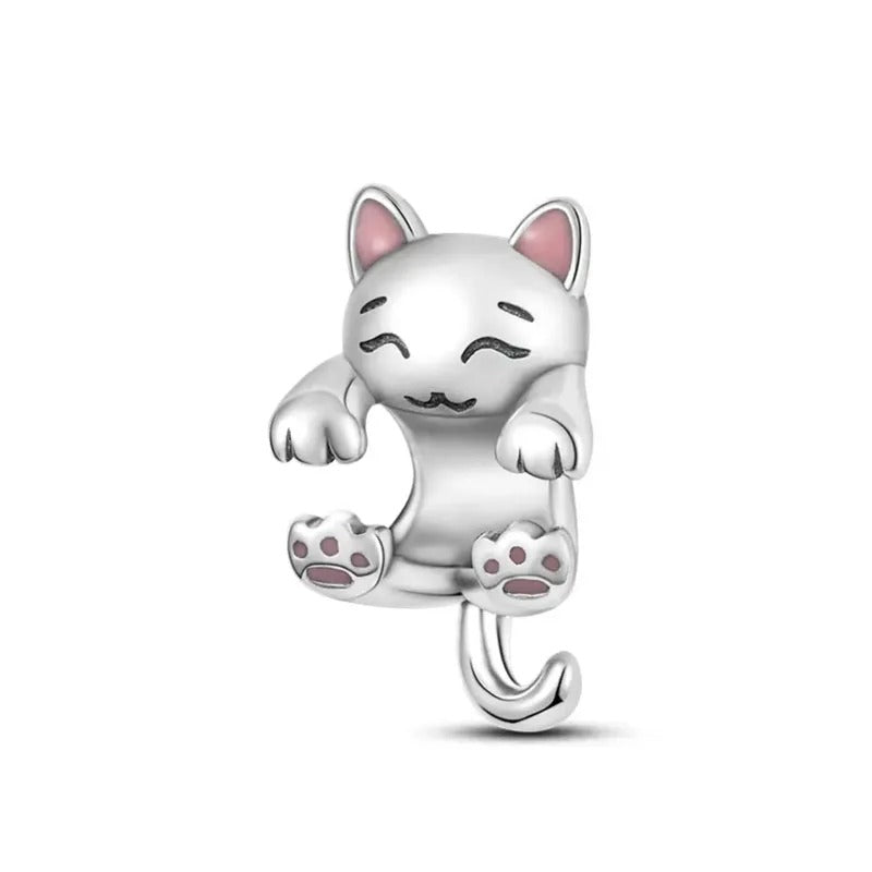 Cute Hugging Cat Charm for Bracelet, S925 Sterling Silver