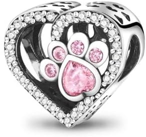 Dog Paw Print & Bone Charm for Bracelet, S925 Sterling Silver