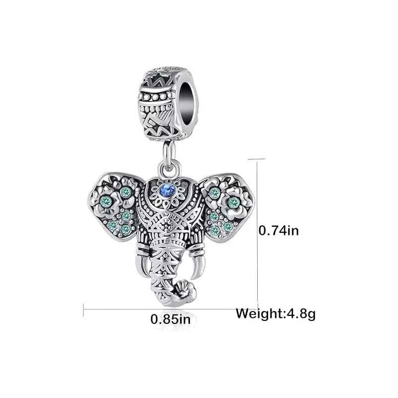 Elephant Dangle Animal Charm for Bracelet, S925 Sterling Silver