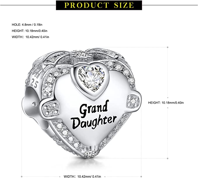 Grand Daughter I Love You Charm for Bracelet, S925 Sterling Silver