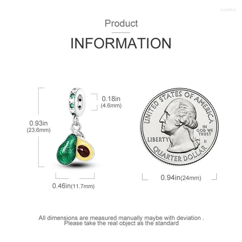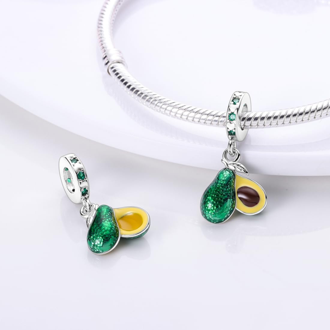 Green Avocado Dangle Charm for Bracelet, S925 Sterling Silver