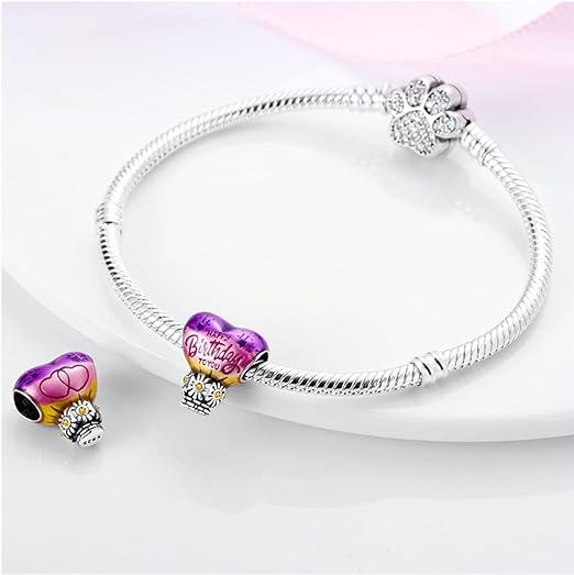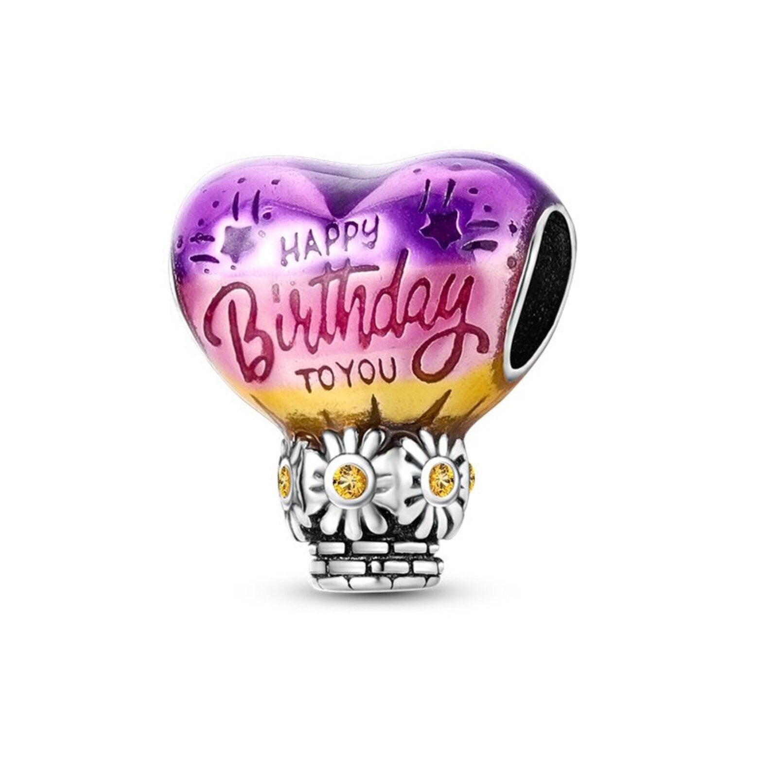 Happy Birthday Balloon Charm for Bracelet, S925 Sterling Silver