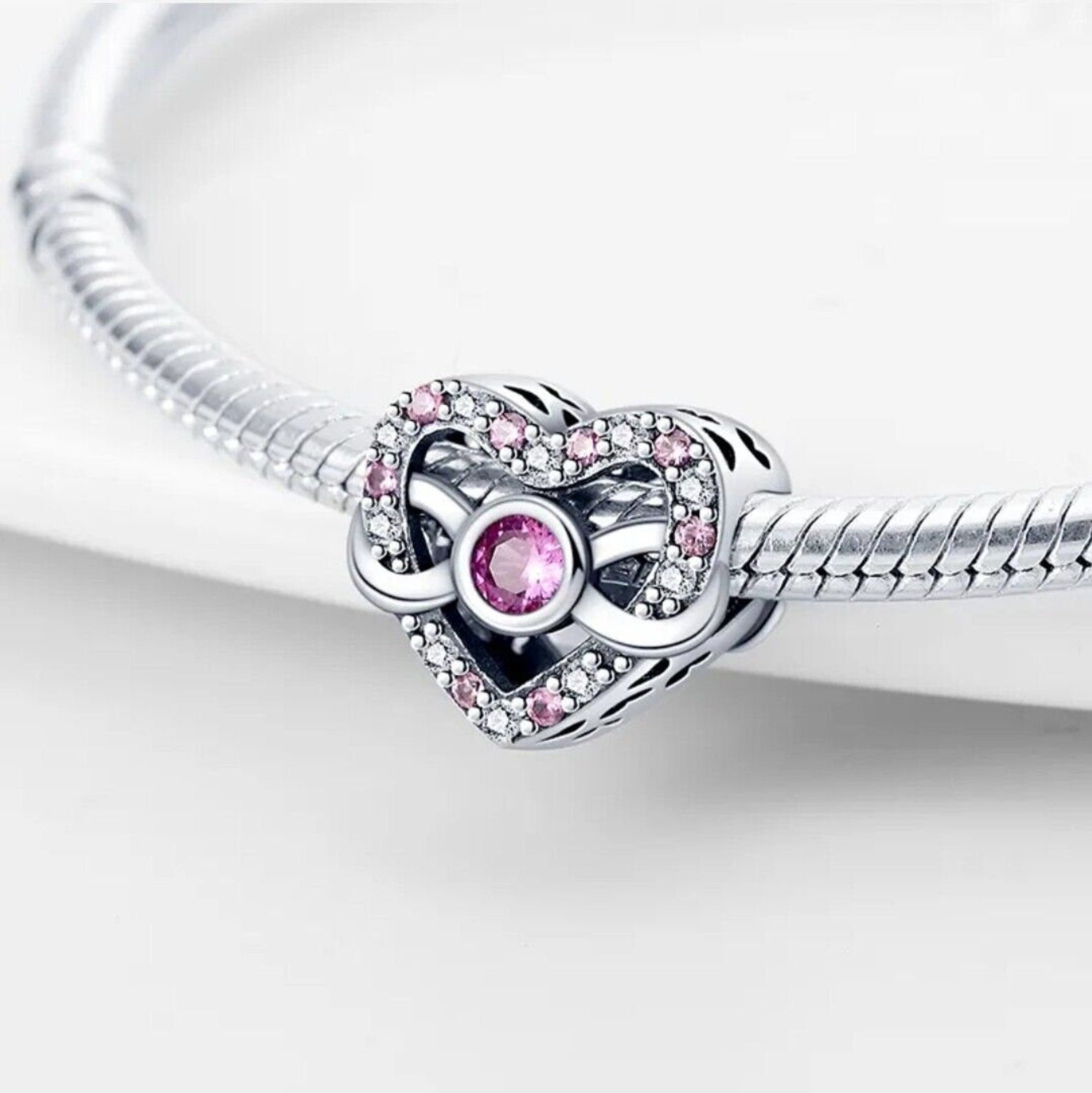 Heart Shape Infinity Charm for Bracelet, S925 Sterling Silver