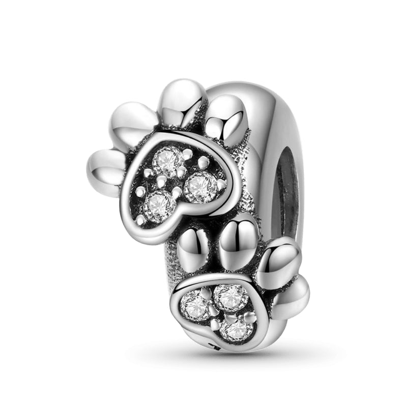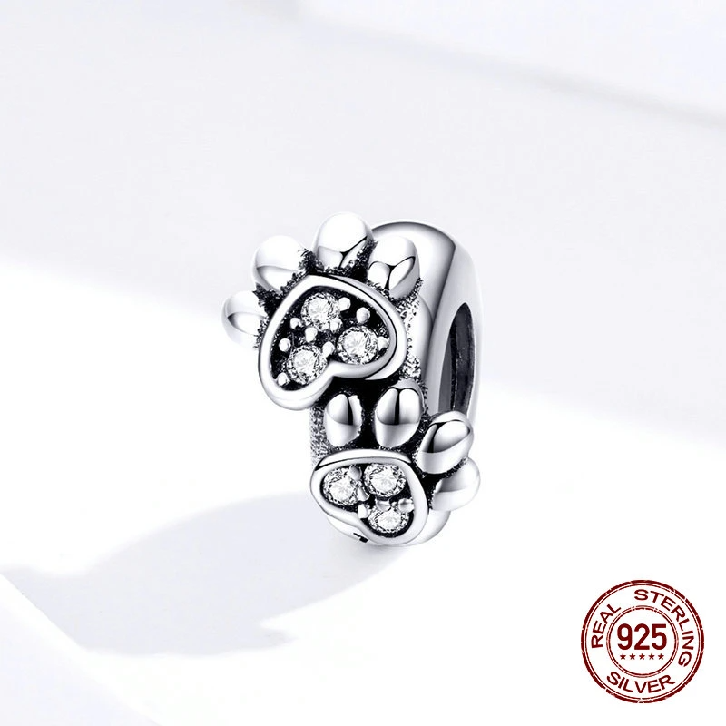Hearts and Paw Print Charm Spacer For Bracelet, S925 Sterling Silver Charm