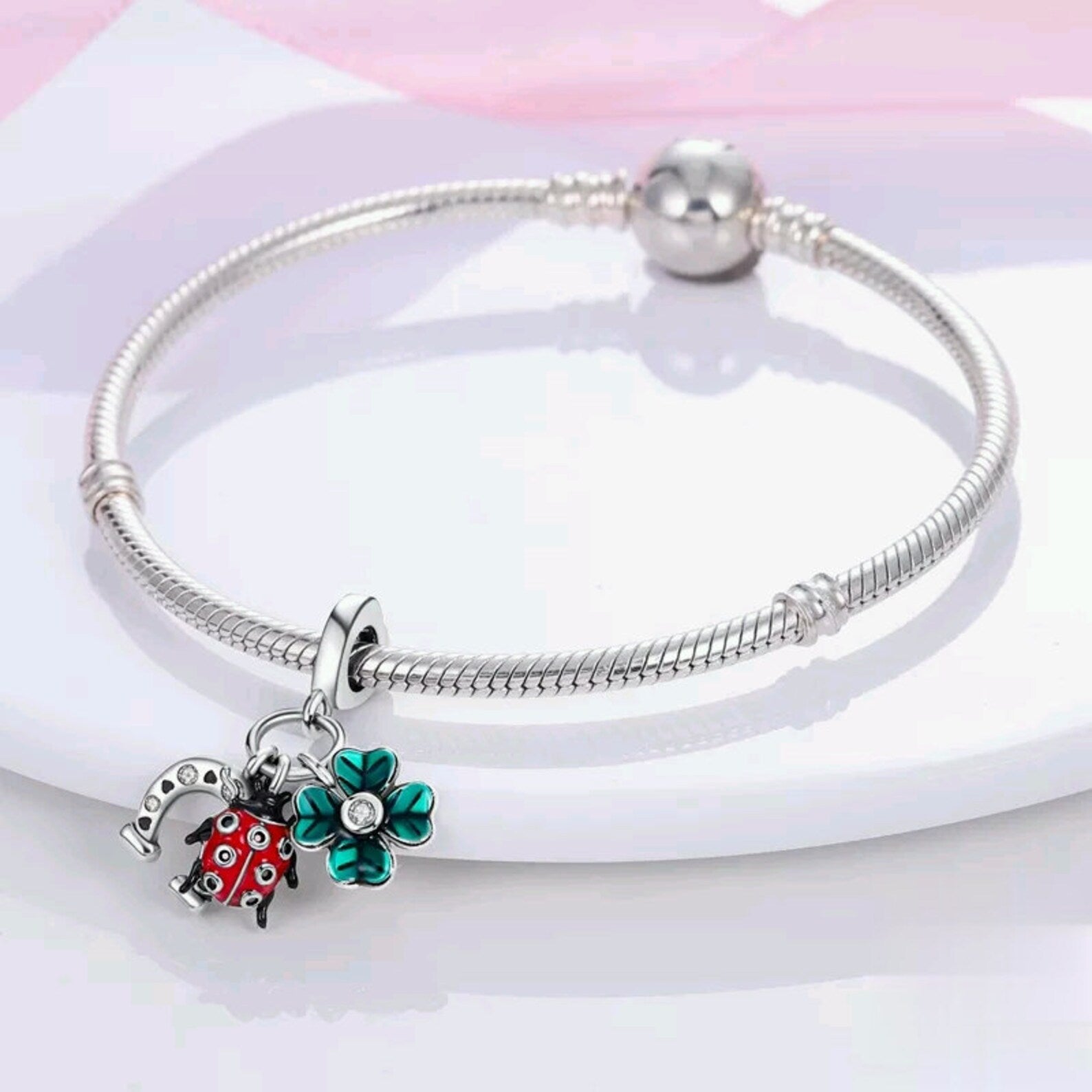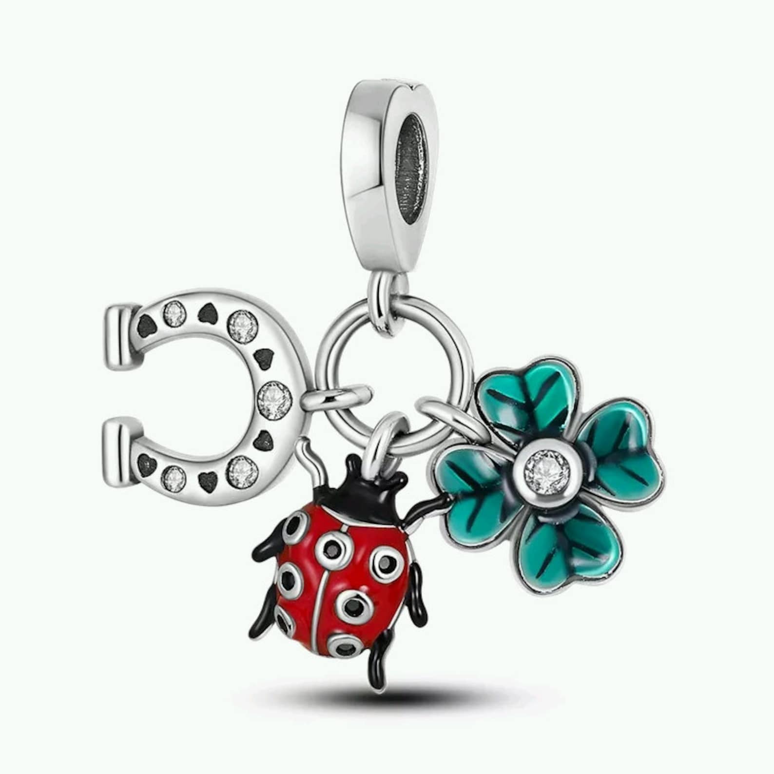 Horse Shoe Clover Ladybug Dangle Charm for Bracelet, S925 Sterling Silver