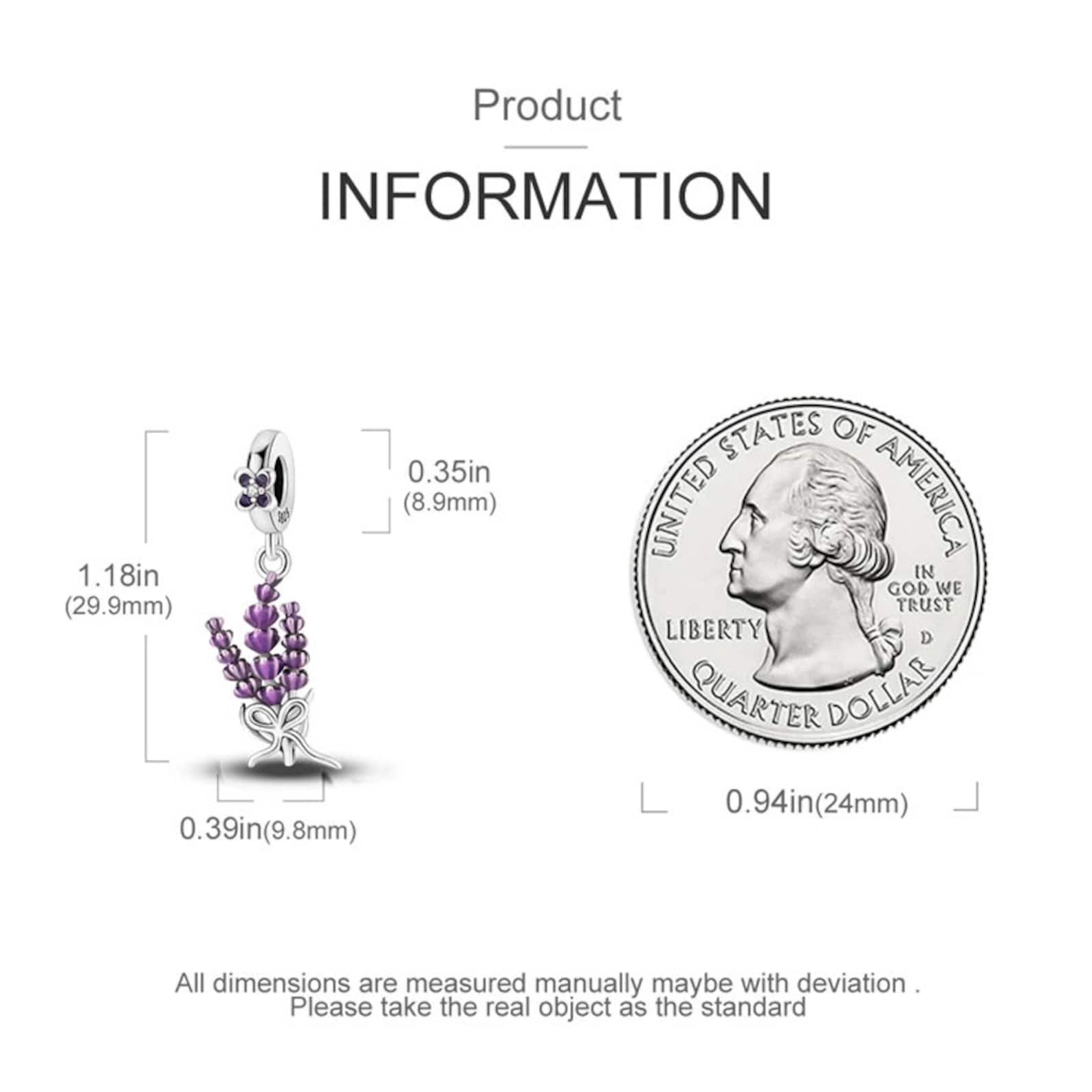Lavender Flower Dangle Charm for Bracelet, S925 Sterling Silver