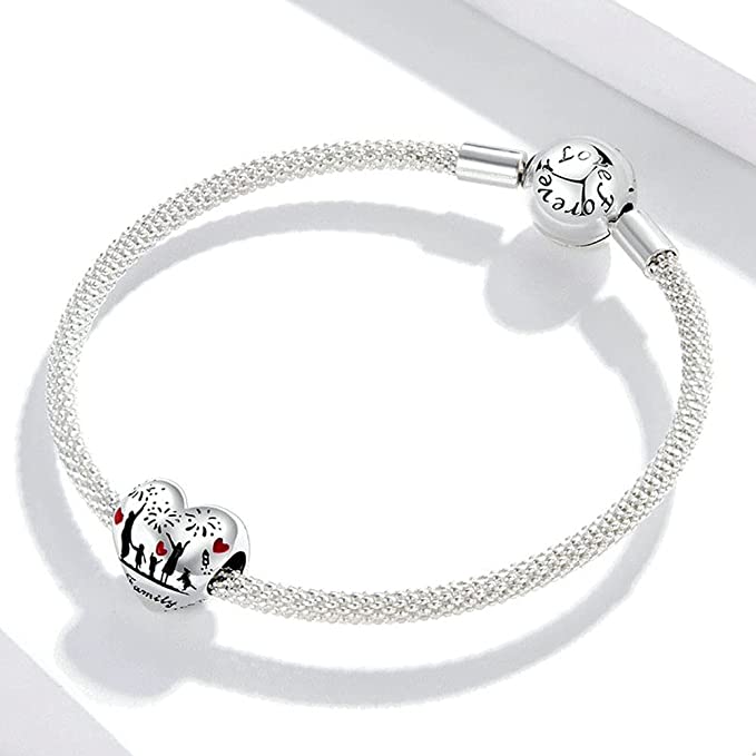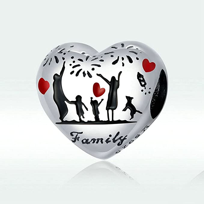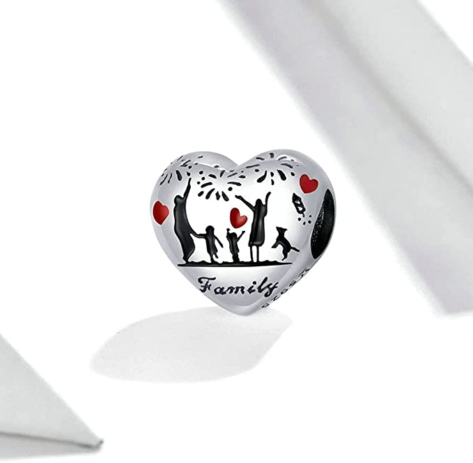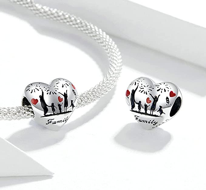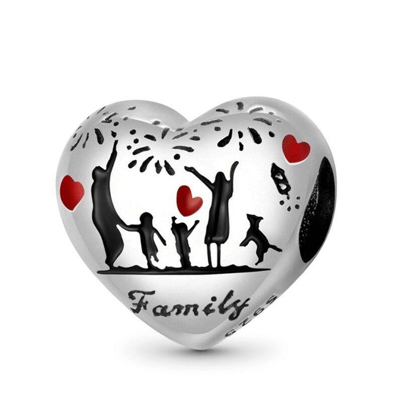 Love of Family Heart Charm for Bracelet, S925 Sterling Silver