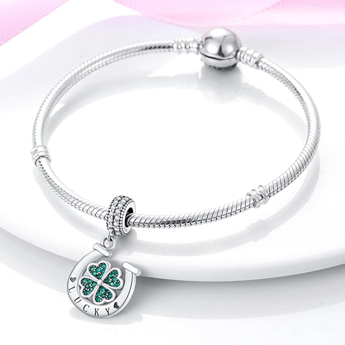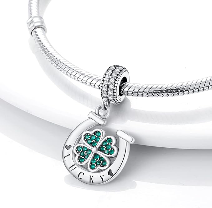 Lucky Horseshoe Dangle Charm for Bracelet, S925 Sterling Silver