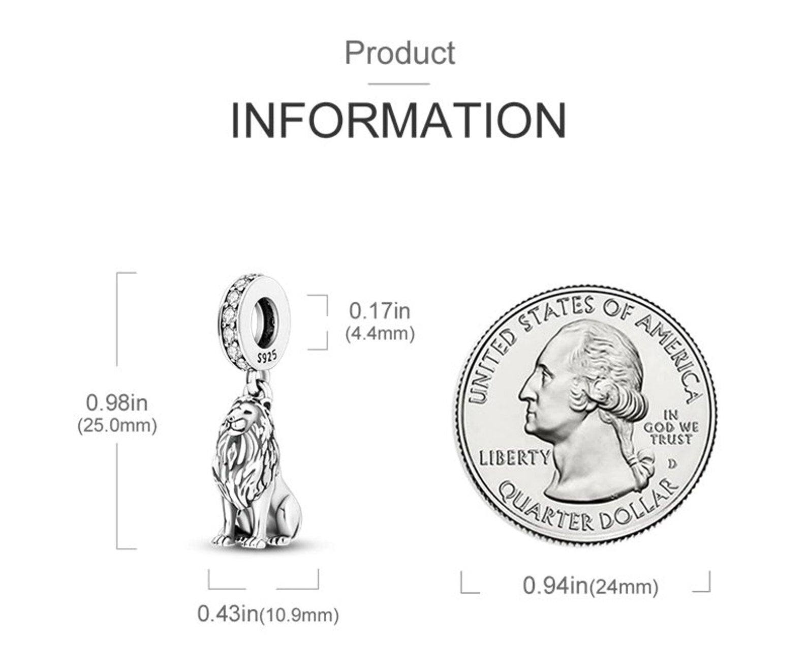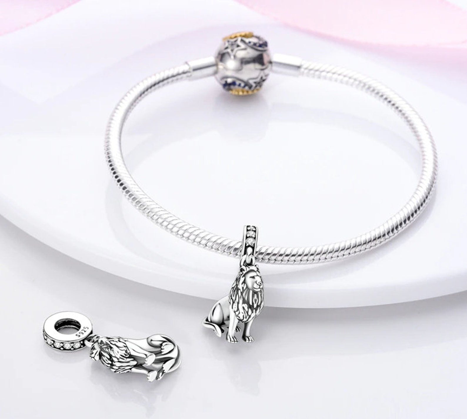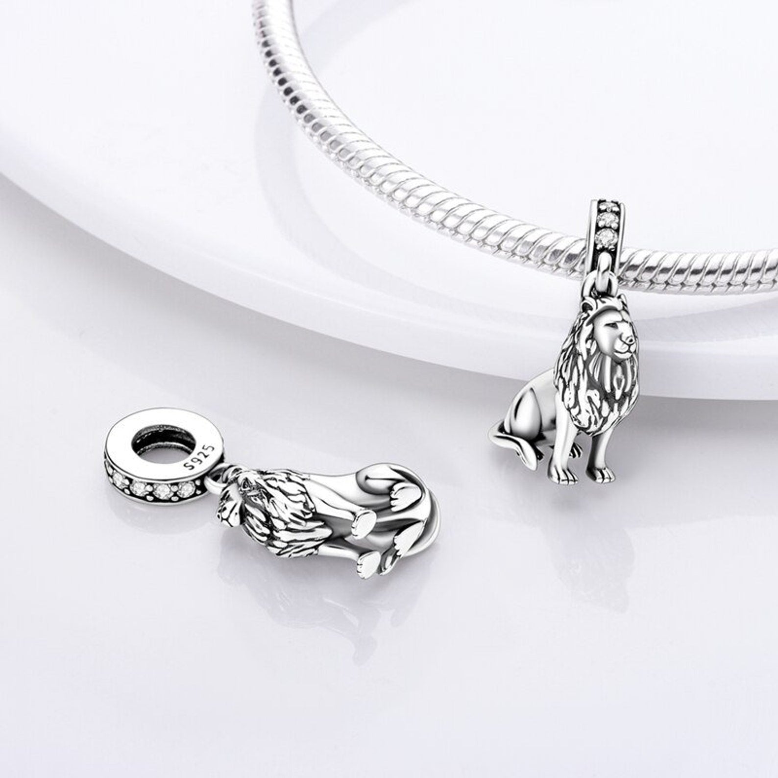 Majestic Lion Charm for Bracelet, S925 Sterling Silver