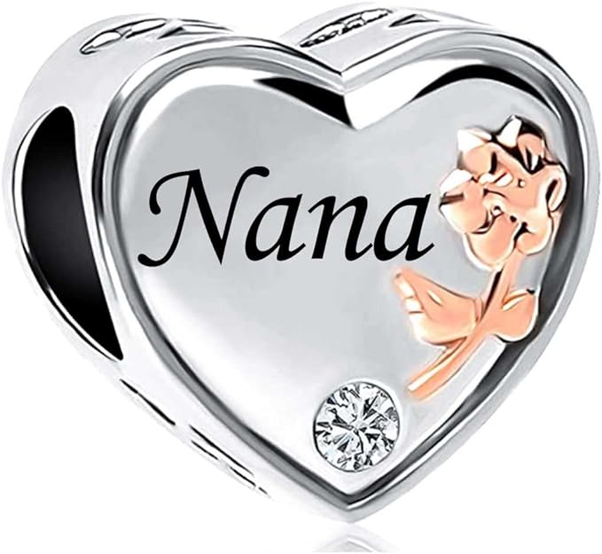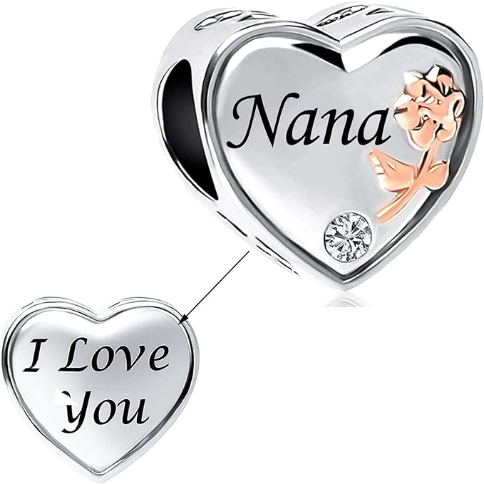 Nana I Love You Heart Charm for Bracelet, S925 Sterling Silver