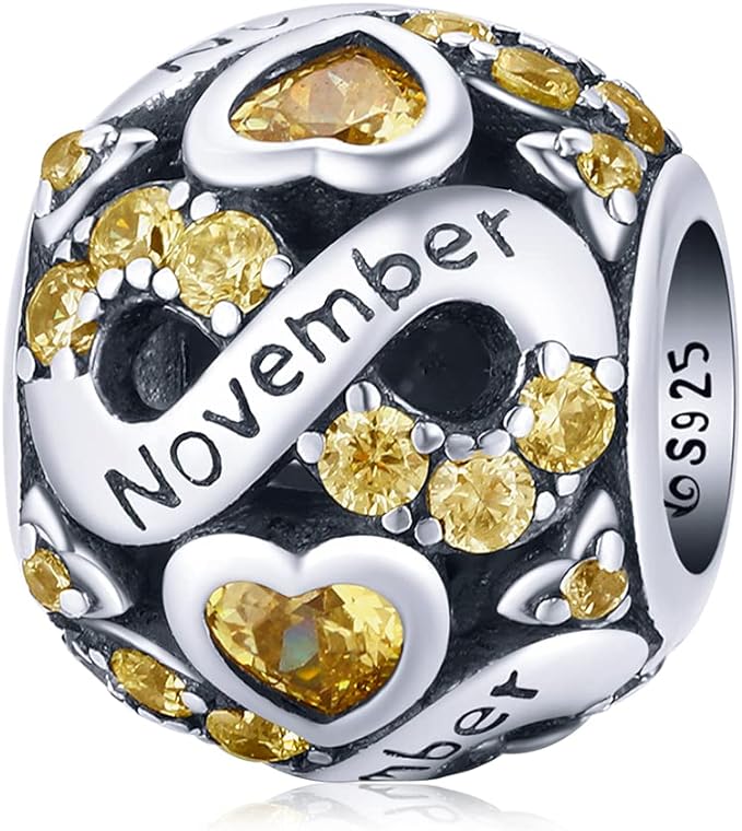 November Birthstone Infinity Birthday Bead Charm for Bracelet, S925 Sterling Silver