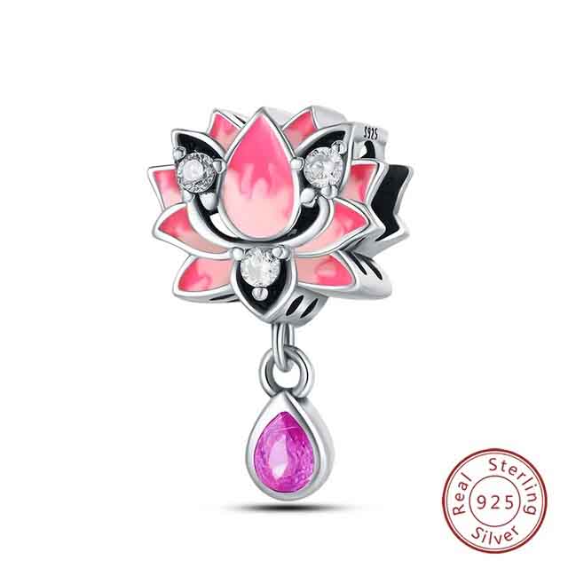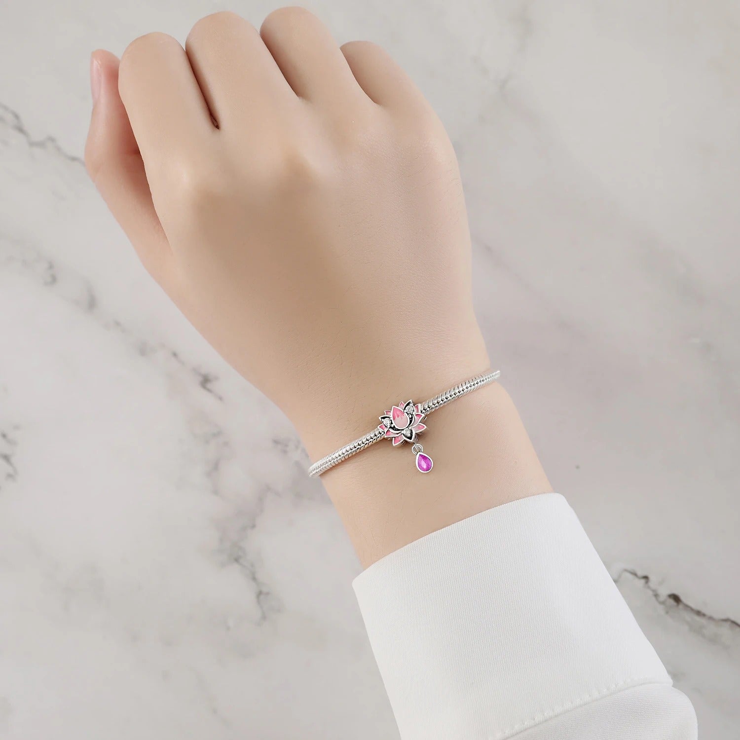Pink Lotus Flower Charm for Bracelet, S925 Sterling Silver