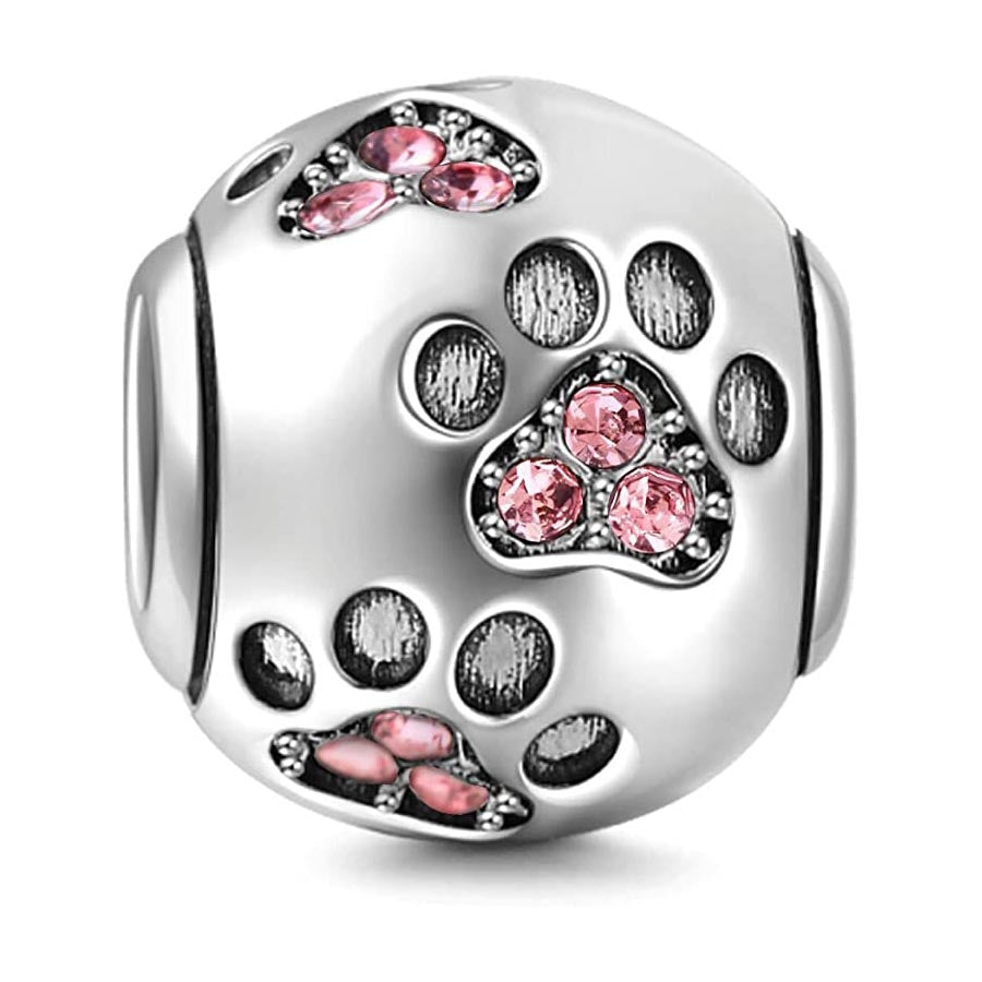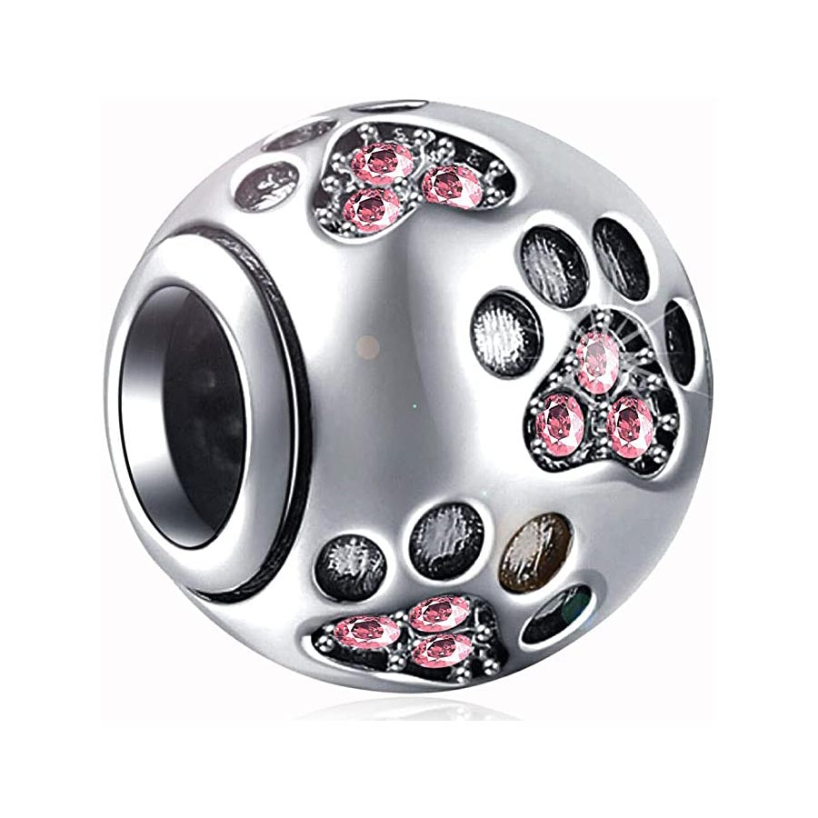 Pink Paw Print Animal Pet Dog Footprint Charm for Bracelet, S925 Sterling Silver