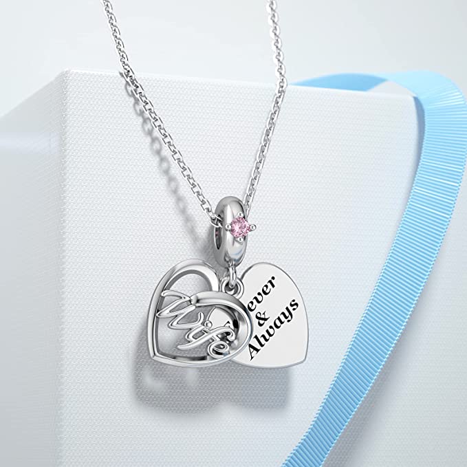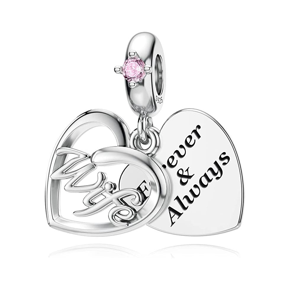 Pink Stone Wife Dangle Charm for Bracelet, S925 Sterling Silver