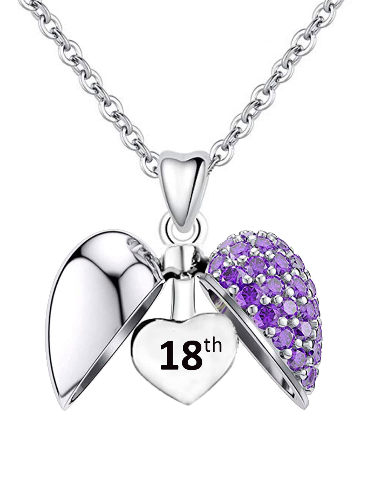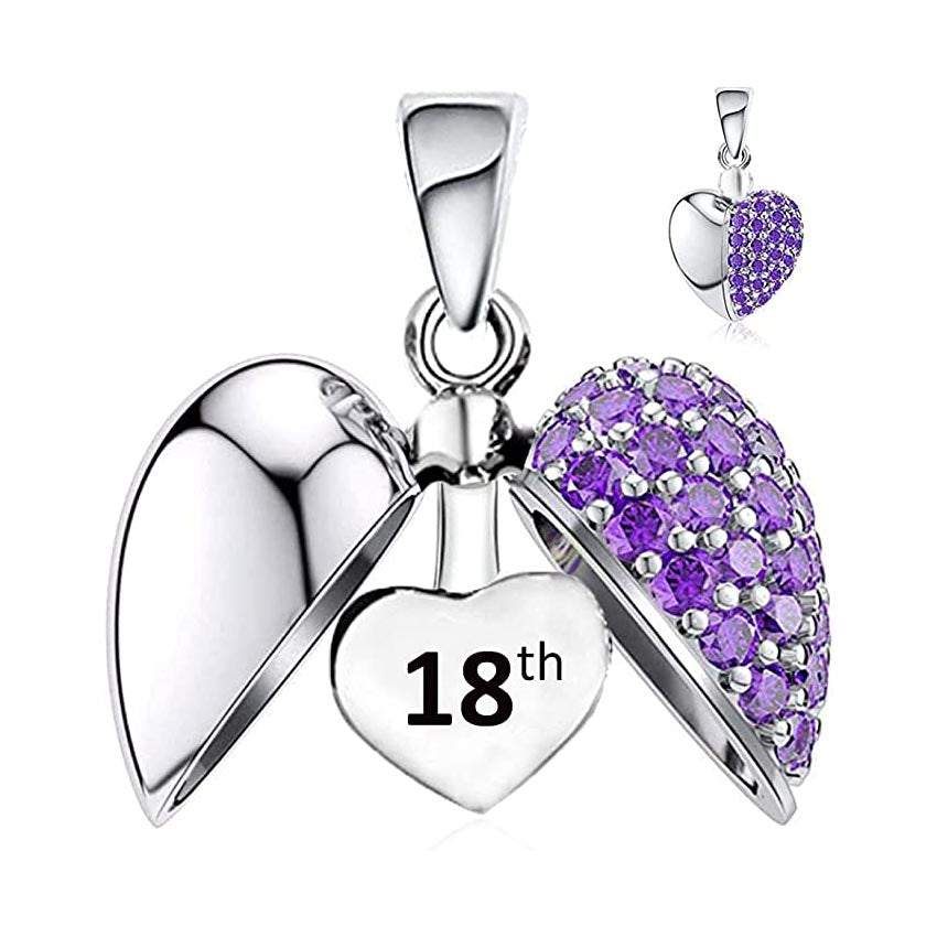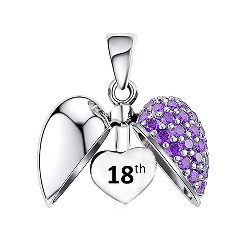Purple Stone 18th Birthday Locket Charm for Bracelet, S925 Sterling Silver