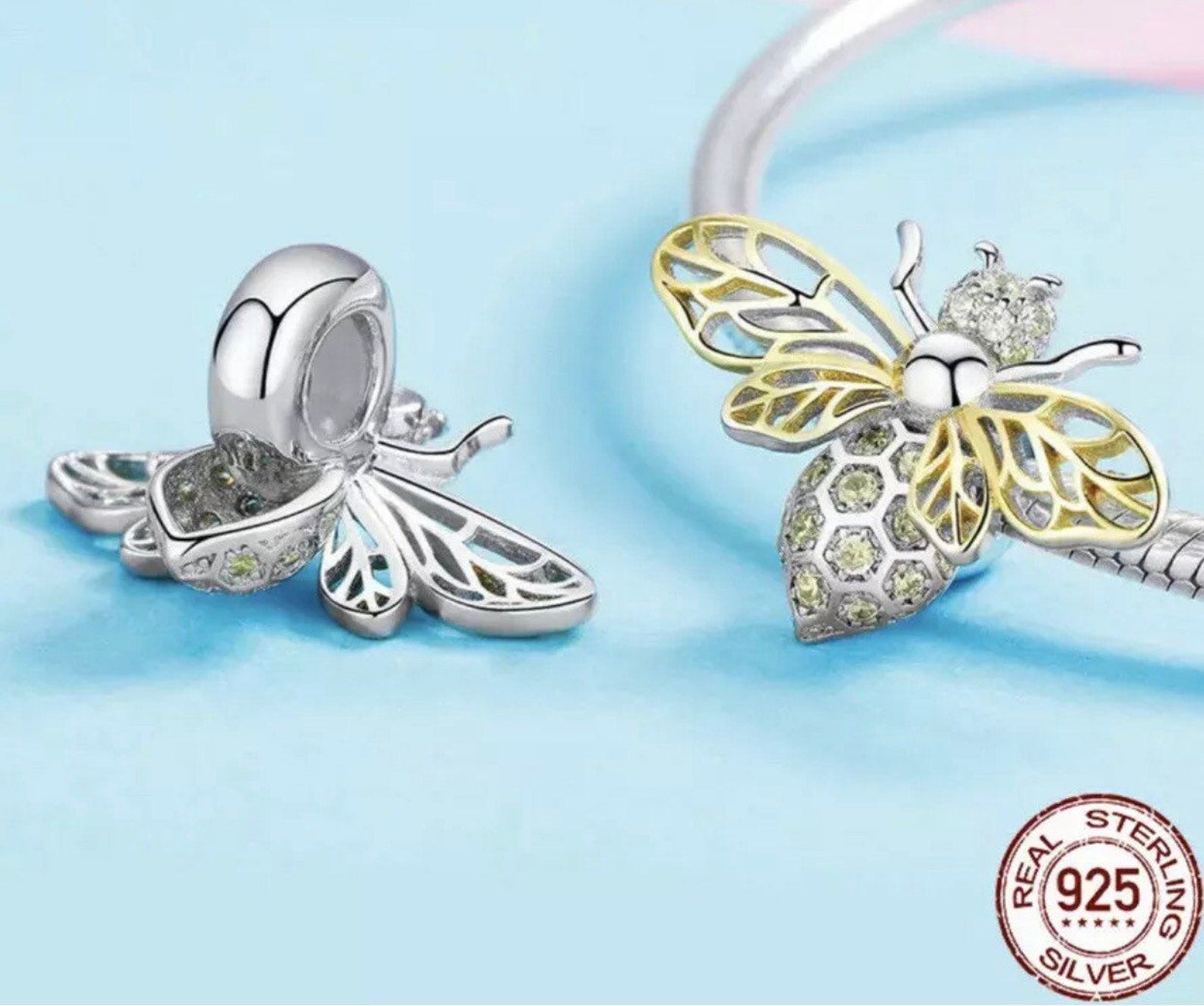Queen Bee Charm for Bracelet, S925 Sterling Silver