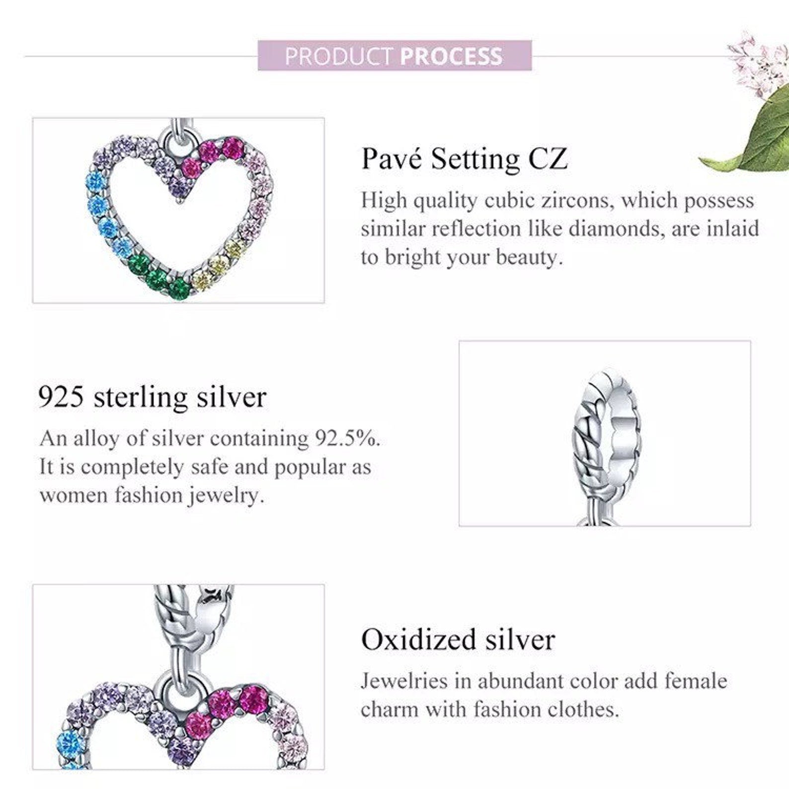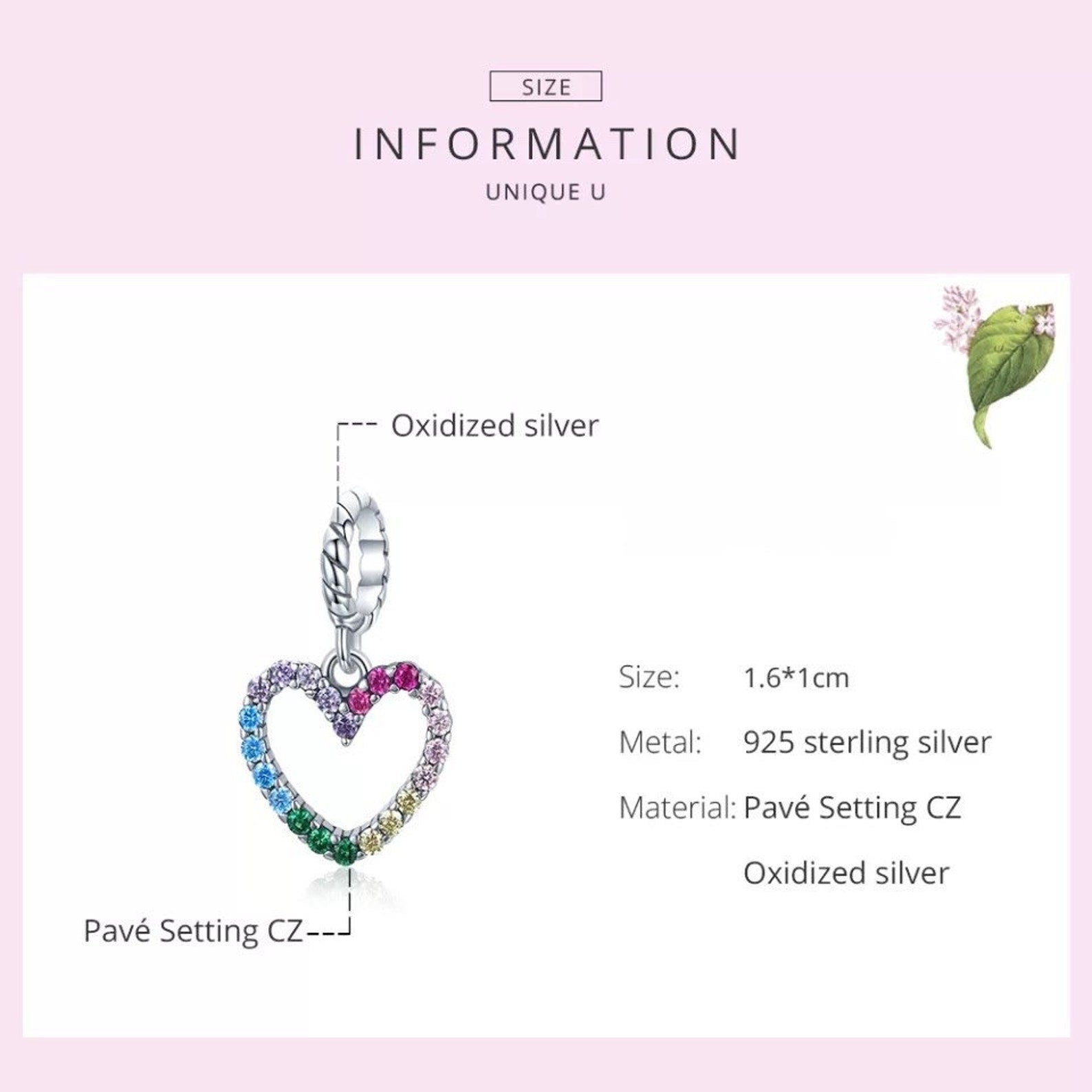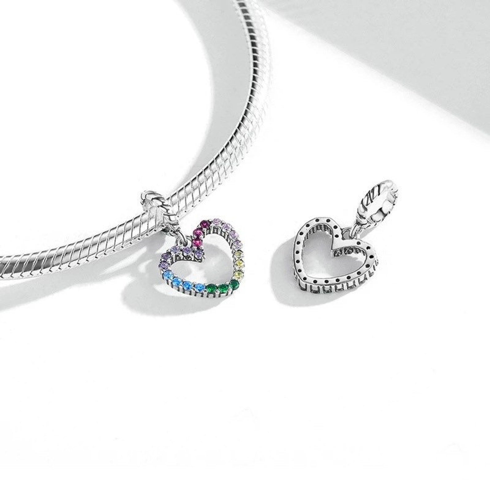 Rainbow Heart Pendant Charm for Bracelet, S925 Sterling Silver