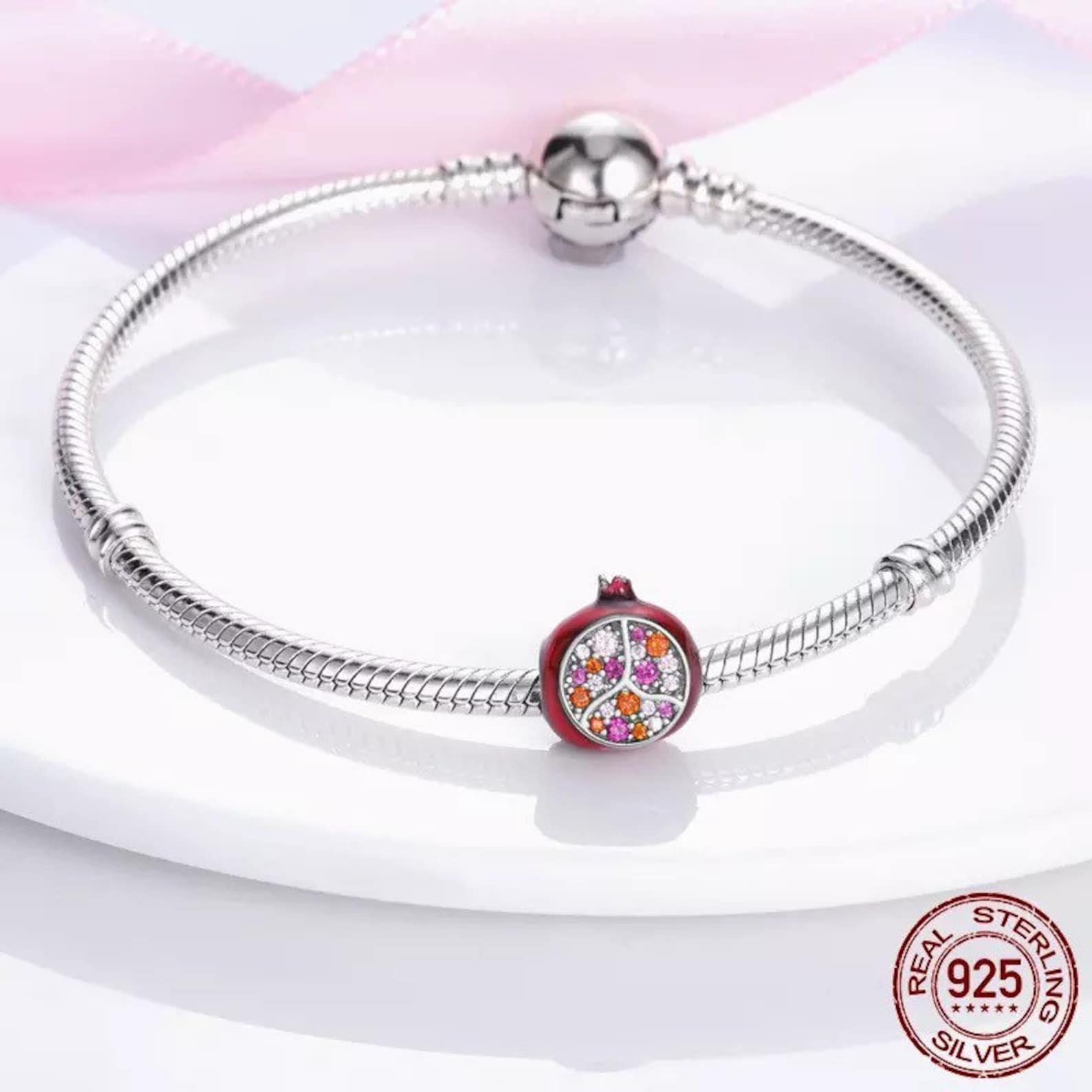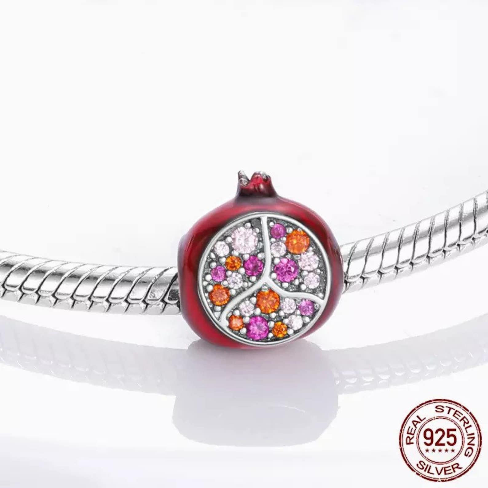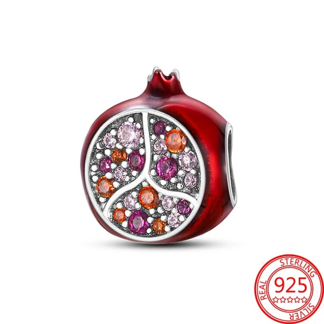 Red Pomegranate Charm for Bracelet, S925 Sterling Silver