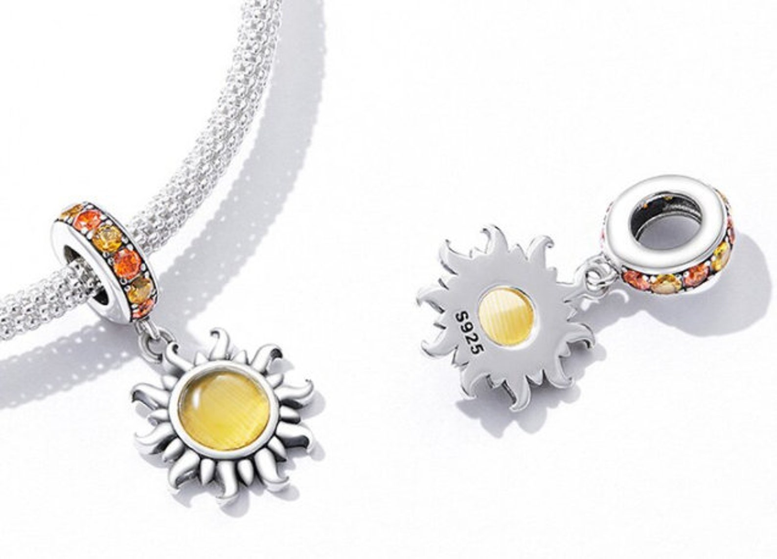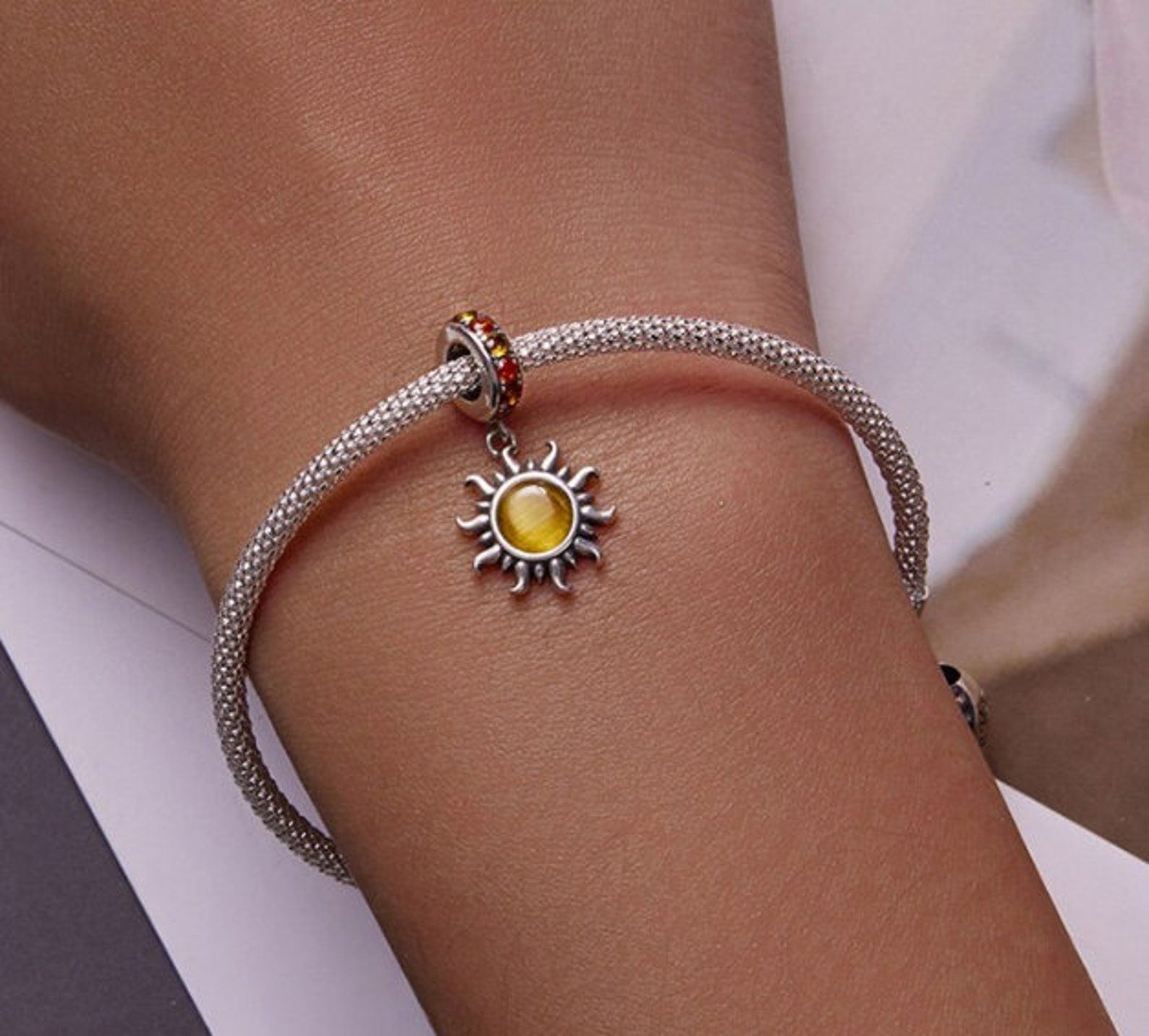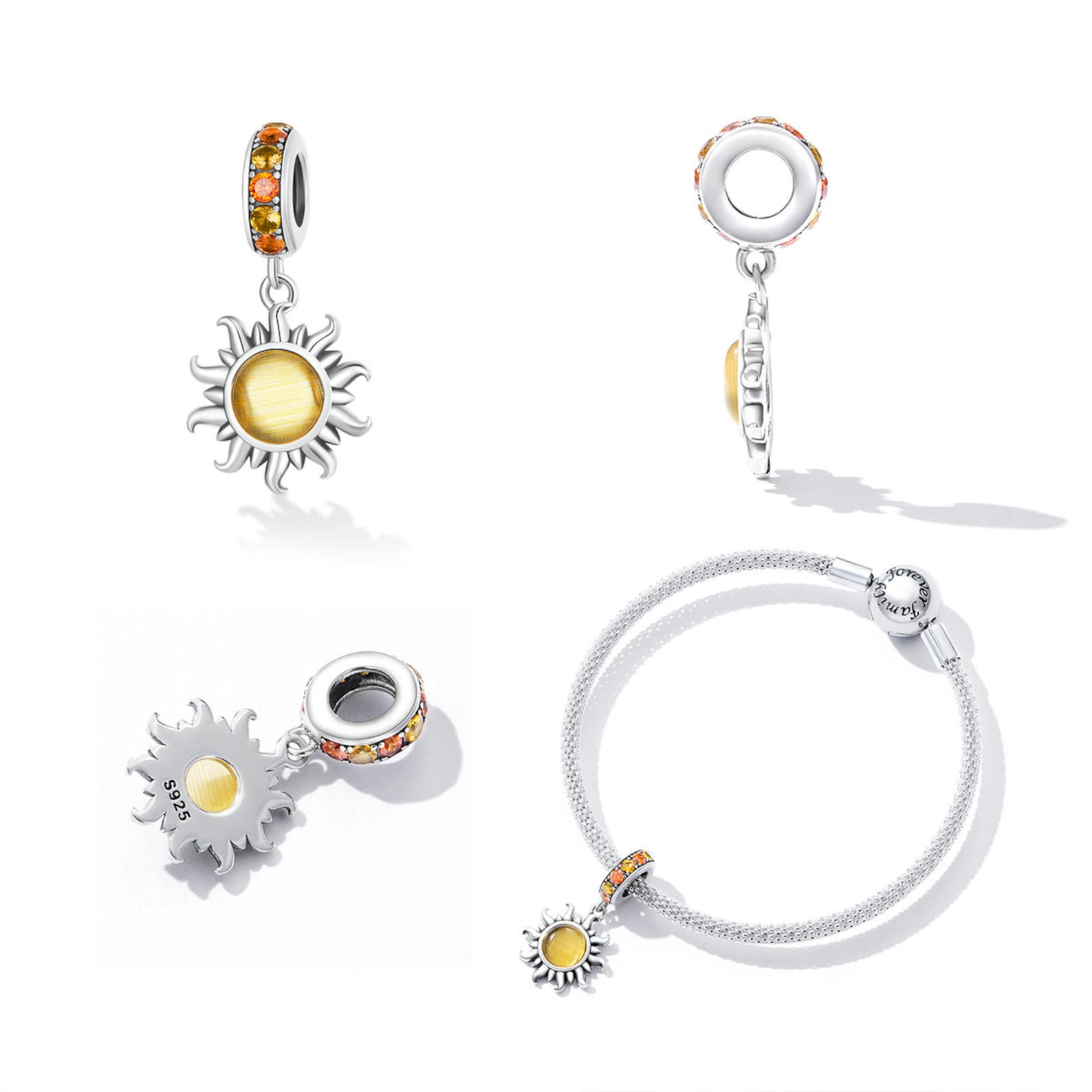 Rising Sun Charm for Bracelet, S925 Sterling Silver