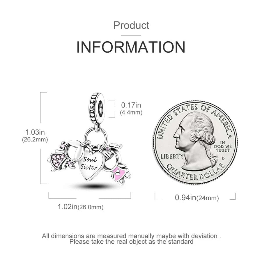 Soul Sisters Pendant Charm for Bracelet, S925 Sterling Silver