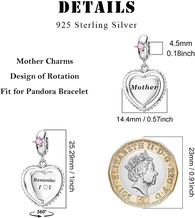 Spinning Mother Dangle Charm for Bracelet, S925 Sterling Silver