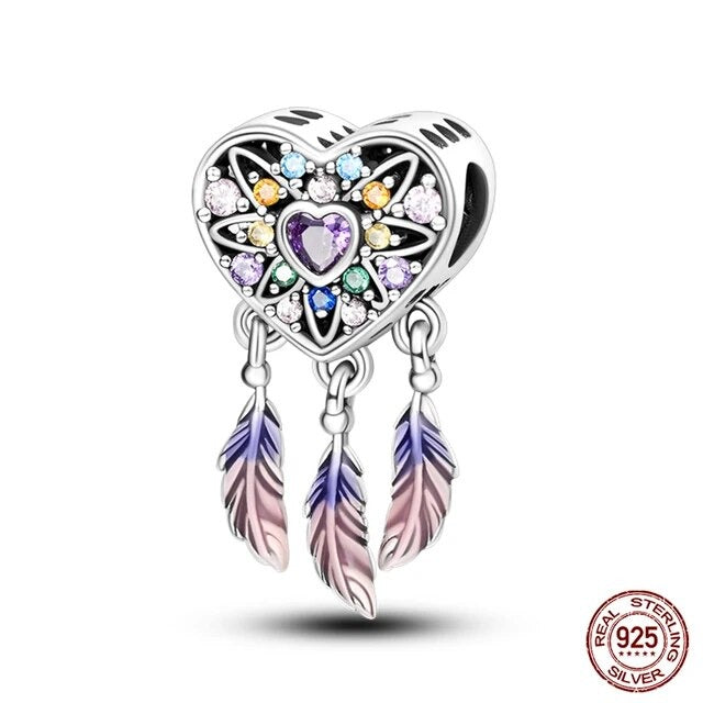 Spiritual Dreamcatcher Heart Charm for Bracelet, S925 Sterling Silver
