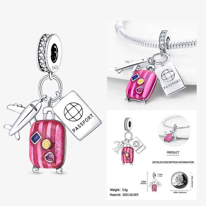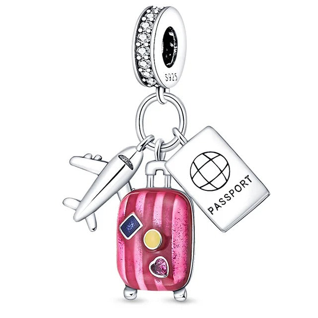 Travel Holiday Dangle Charm for Bracelet, S925 Sterling Silver