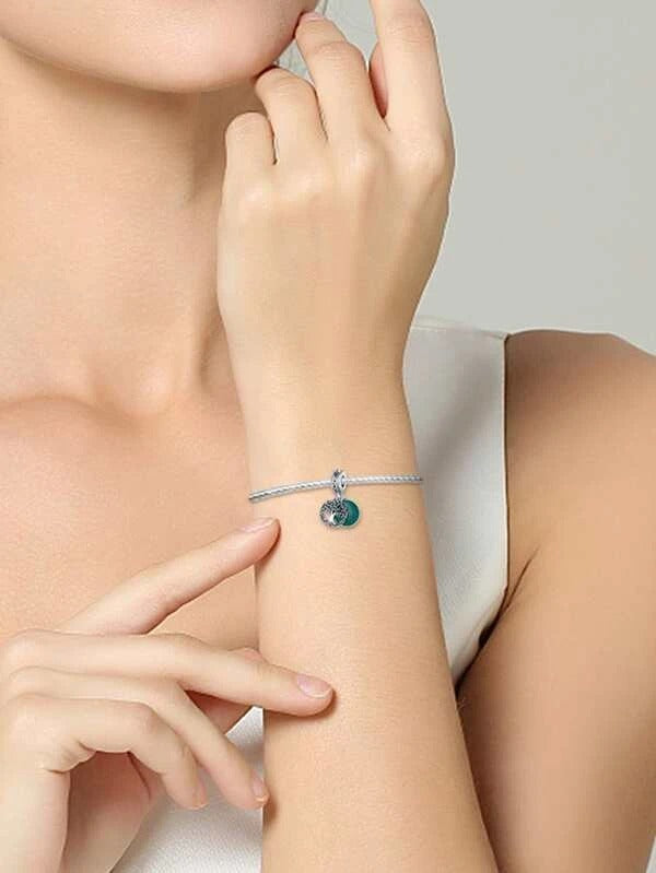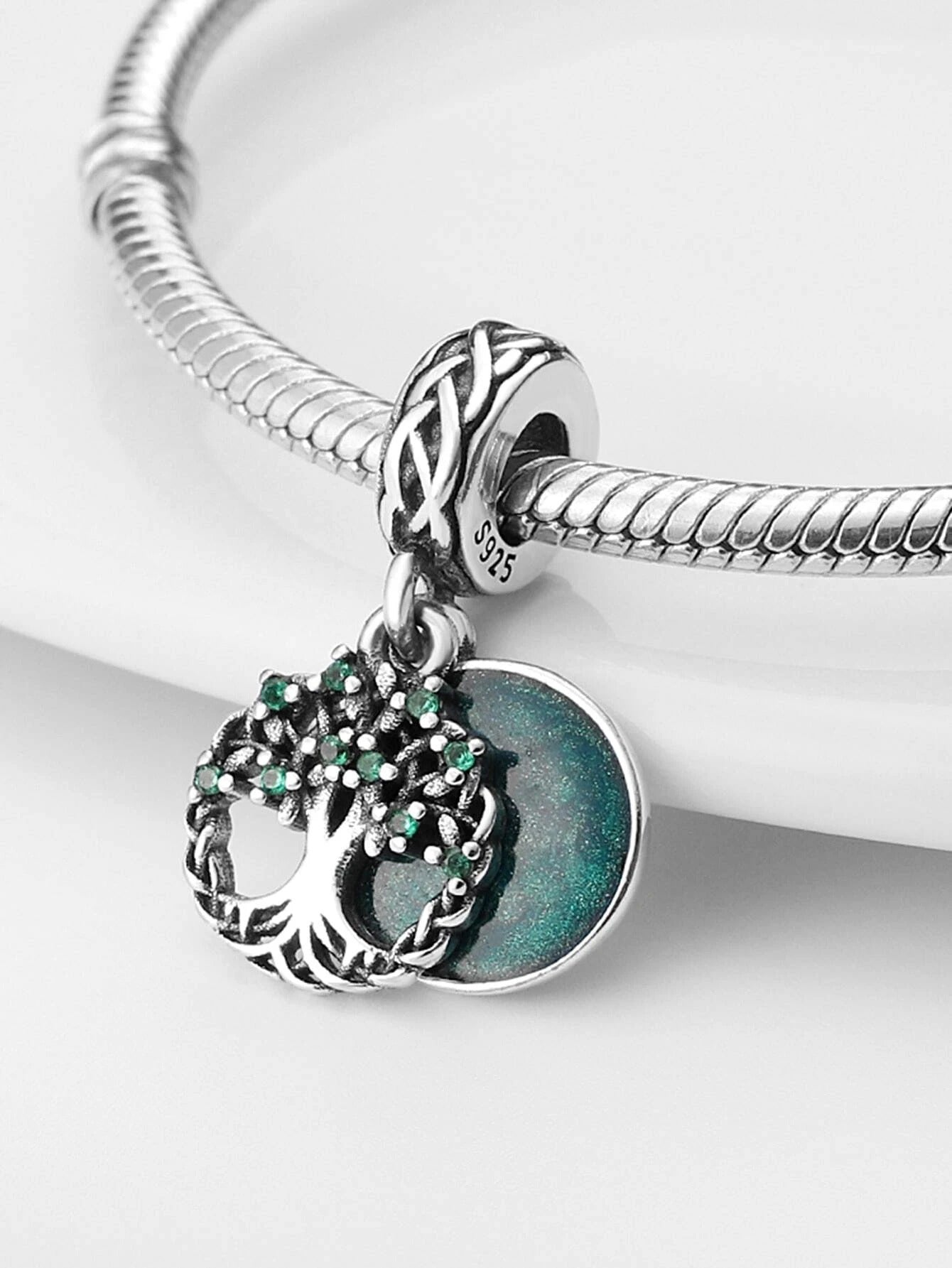 Tree of Life Green Pendant Charm for Bracelet, S925 Sterling Silver